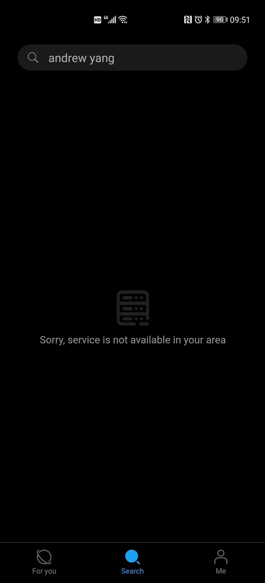但在搜索一些关键词的时候,界面目前显示“此服务在您所在地区不能使用”。