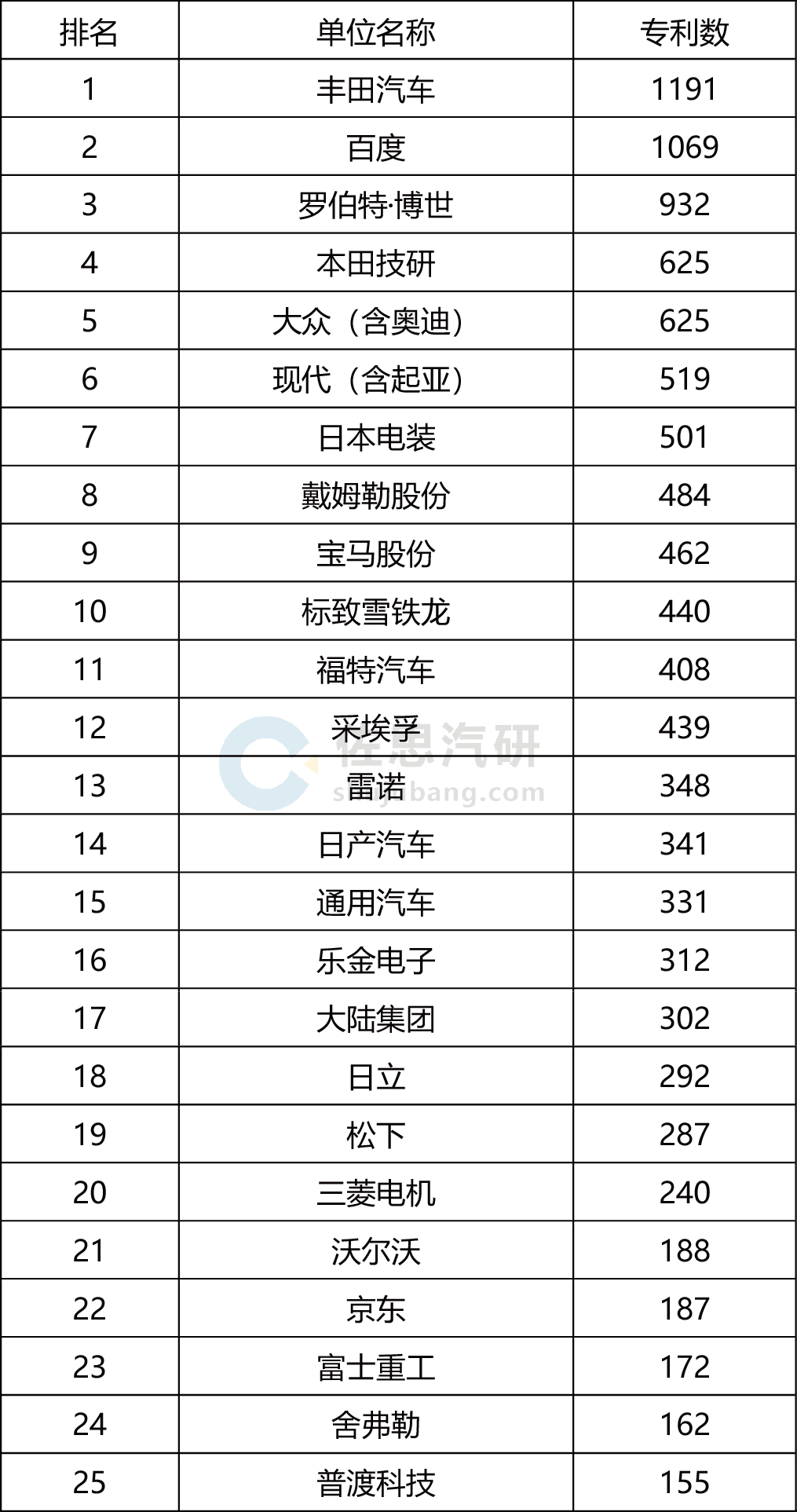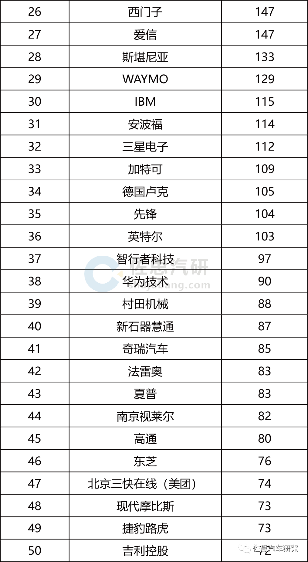 2001-2020全球自动驾驶专利申请量企业排名TOP50
