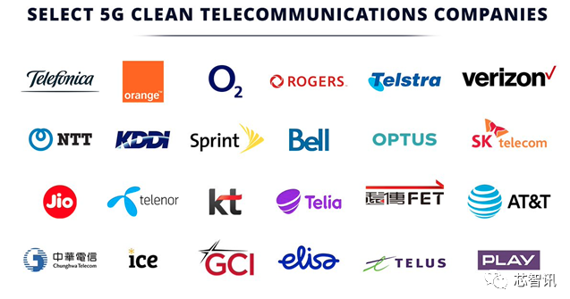 而入列的 24家“5G干净网络”运营商包括美国三大电信公司Verizon、AT&T和Sprint,以及阿拉斯加地方电信公司通用电讯(GCI);加拿大三大移动运营商Rogers、Bell、Telus;英国电信公司O2;西班牙电信(Telefonica);挪威的挪威电信(Telenor)和艾斯电信(Ice);瑞典电信(Telia);芬兰电信公司Elisa;波兰电信公司Play;澳大利亚电信(Telstra)、Optus;日本电报电话公司(NTT)和KDDI;韩国三大电信运营商中的SK电讯和韩国电信(KT);印度的Jio以及中国台湾地区的中华电信与远传电信。