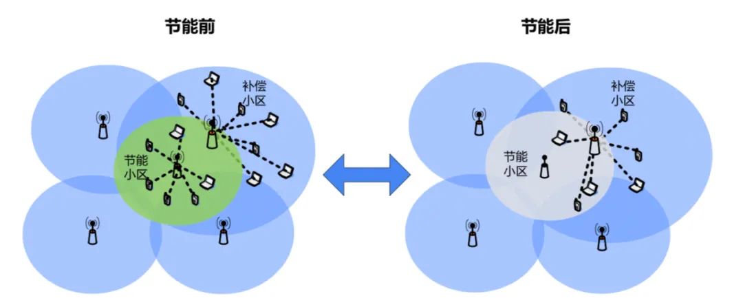 该技术应支持TD-LTE和LTE FDD、5G NR等多种网络制式下的典型基站设备,适用于单网或多网共存场景,可根据网络环境的不同通过在网管段进行数据采集和大数据处理自动识别多频多模网络状态下覆盖小区及容量小区,进行适时小区关断和唤醒,需网管系统支持批量指令下发。