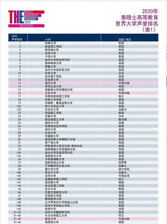 11月3日北京时间晚8点,泰晤士高等教育发布了2020年的世界大学声誉排名。
