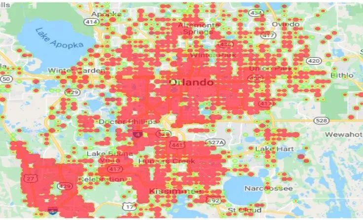 在位置多样性方面,对于每个query,理想的多样性向量分布,基于这个query下用户的反馈信息来计算。论文作者用经典的KD-Tree结构来将每个地理位置,然后计算每个地理位置下用户反馈的分布,从而得到对于这个query的理想的地理位置多样性分布。下图是一个用户反馈在位置上分布的例子: