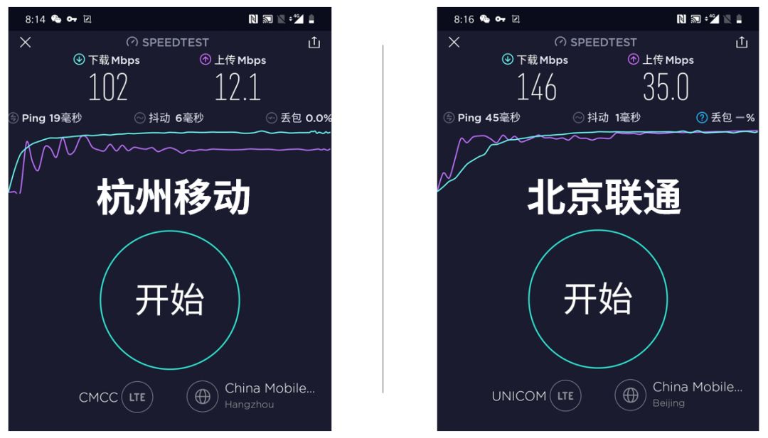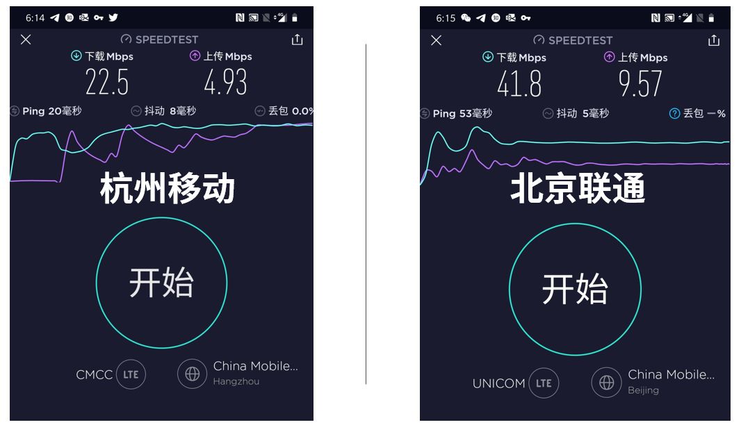 差评君分别找了一张移动和联通的卡,先在办公室里测了一下速度。联通速度生猛,移动倒是符合「 被限速 」的网速。