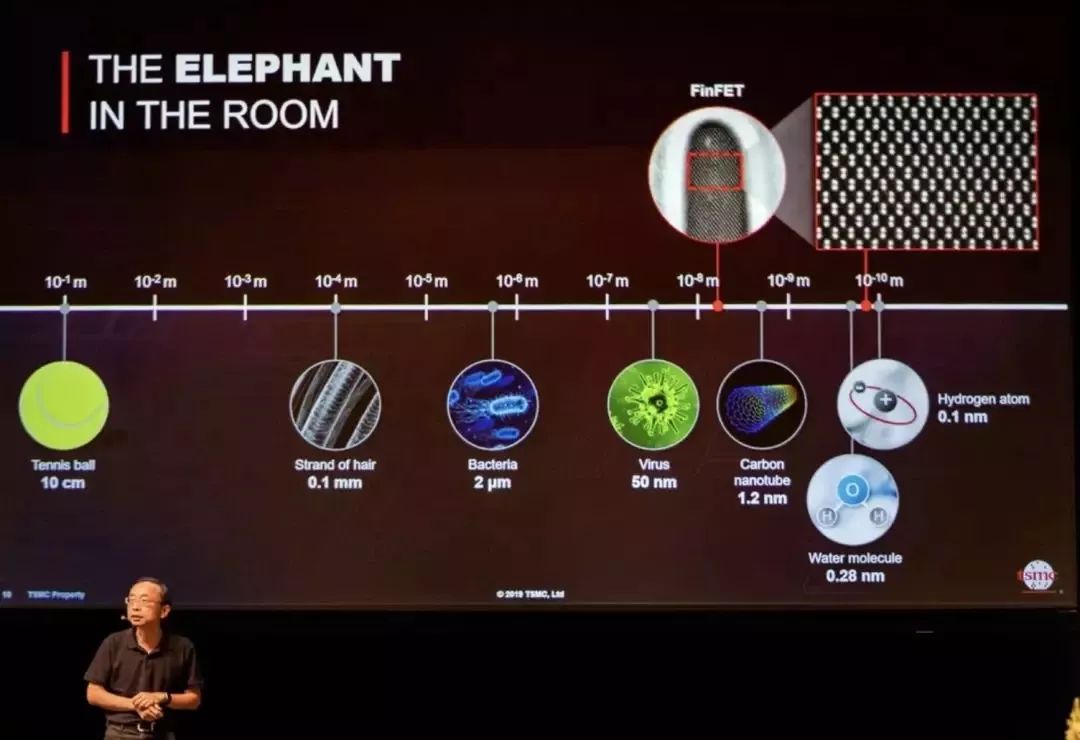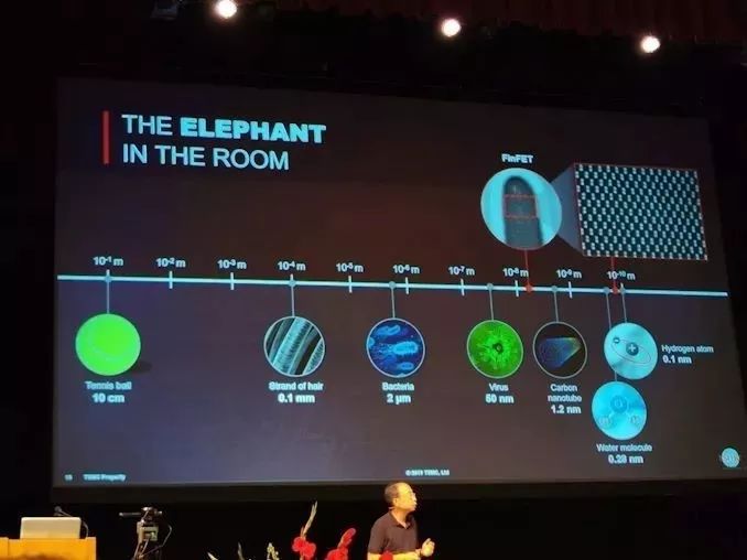 黄汉森表示,芯片技术的元件正在缩小到极小的尺寸