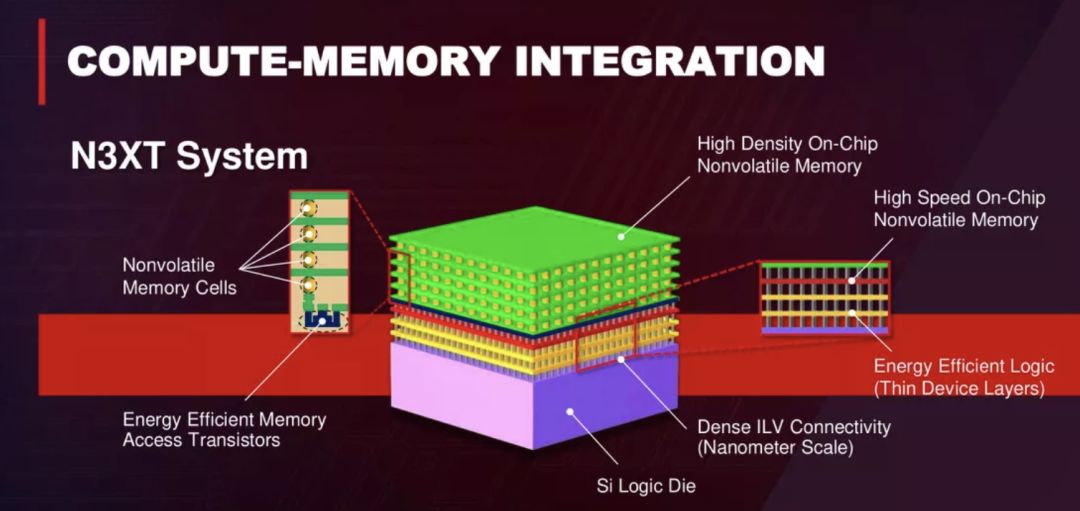 而下一步就是Beyond 3D,它实现了逻辑和内存的多层整合,在纳米级尺度上实现了高密度的TSV工艺,即“N3XT级”系统。