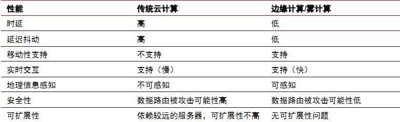 边缘计算与传统云计算主要性能对比(来源:思科)