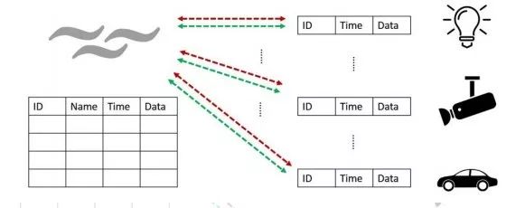 3、数据抽象:在物联网环境中会有大量的数据生成,并且由于物联网网络的异构环境,生成的数据是各种格式的,把各种各样的数据格式化对边缘计算来说是一个挑战。同时,网络边缘的大部分事物只是周期性的收集数据,定期把收集到的数据发送给网关,而网关中的存储是有限的,他只能存储最新的数据,因此边缘结点的数据会被经常刷新。利用集成的数据表来存储感兴趣的数据,表内部的结构可以如下图所示,用id、时间、名称、数据等来表示数据。