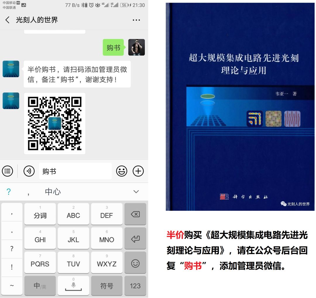 半价购买《超大规模集成电路先进光刻理论与应用》,请在公众号后台回复“购书”,或者直接扫码,添加管理员微信。