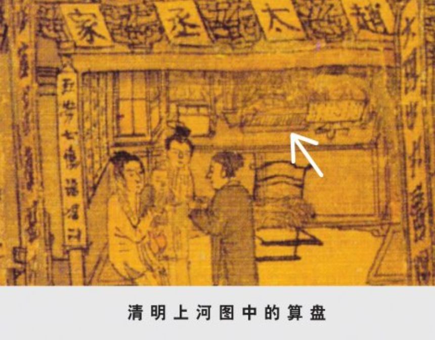事实上中国式算盘还使用了十六进制和复合的二五进制。关于算盘的书面记载,至少可以追测到宋代名画《清明上河图》,那里药铺柜台上就赫然摆放着一个算盘!