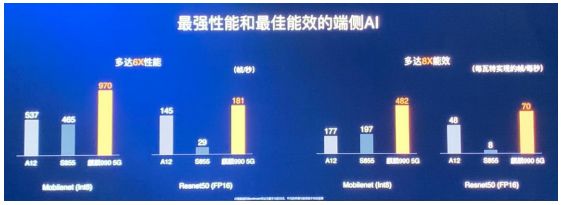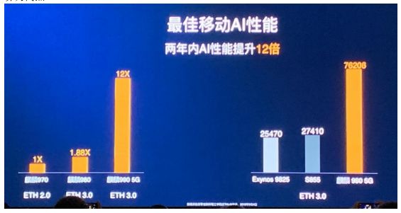 华为方面,表示在双大核NPU(Ascend Lite*2)加持下,麒麟990 5G实现业界最强AI算力,与业界其他旗舰AI芯片相比,性能优势高达6倍,能效优势高达8倍,持续刷新端侧AI的算力高点。