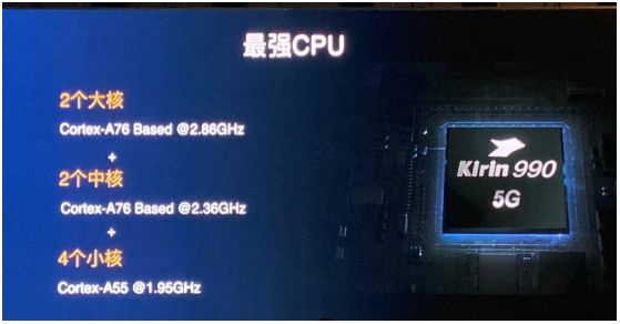 首先看CPU方面,据介绍,华为Kirin 990采用“2+2+4”的配置,包括两个频率为2. 86GHz的 A76大核心、两个2. 36 GHz A76中核心和四个1.96 GHz A55小核心。这是华为9系从980开始进引入的配置,有别于960之前的“4+4”配置。作为对比,华为Kirin 980的大核、中核和小核的主频则分别为2.6Ghz、1.9Ghz和1.8Ghz,都分别有了小幅度的提升。