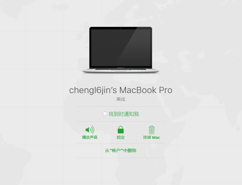 所以说只要让登陆过这台 Macbook Pro 的 iCloud 账户,在找回我的iPhone 页面把这台设备移除就好了。幸好,这台设备上登陆过的 iCloud 账户不多,就 2 个。于是又经过一顿操作,这 2 个账户中该台设备移除完毕。