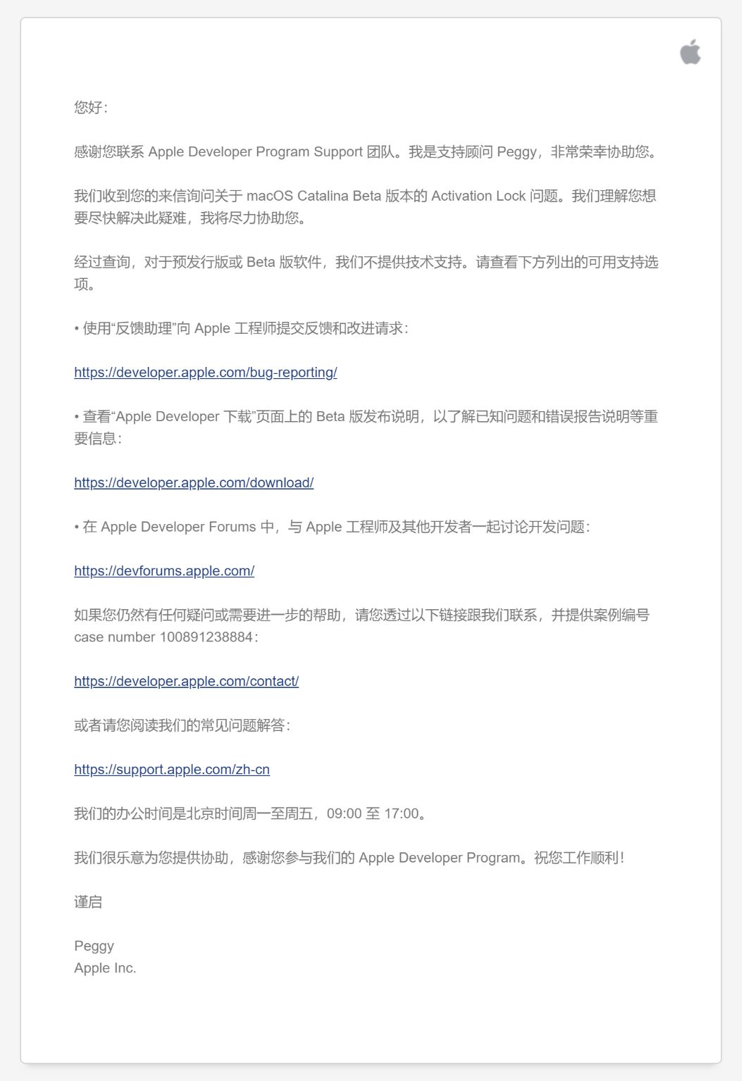 但是我就很好奇了,这装了预发行 Beta 版本的苹果机器,出了这种问题难道只能发邮件等回复了吗?