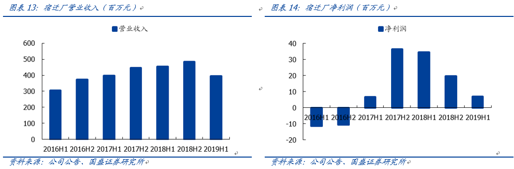 上半年,宿迁厂营业收入3.95亿元,同比减少12.86%;净利润704万元,同比减少79.66%。宿迁厂主要产品包括中大功率、FCOL、DISP/SOP等封装产品,应用于照明、家电、电源管理等。报告期受市场因素影响,订单下降, 产能利用率不足导致毛利下降,盈利水平降低。