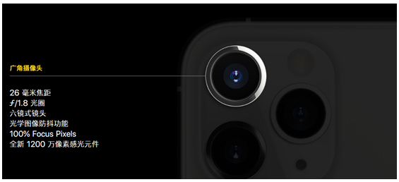 从苹果发布会直播视频中已披露的消息来看,相机是最大的升级点。iphone11虽然还是两颗摄像头,但原来的广角+长焦组合变成了广角+超广角组合;iphone11Pro和iphone 11 Pro Max则采用了长焦+广角+超广角三摄像头设计。