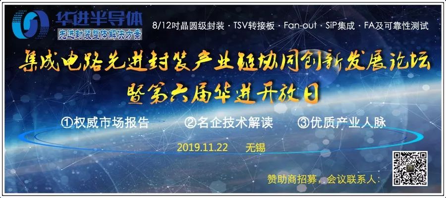 2019年集成电路先进封装产业链协同创新发展论坛暨第六届华进开放日将于11月22日(周五)在无锡新湖铂尔曼举行。活动预计接待300名来自封测、晶圆制造、终端、设计以及材料装备等企业的专业观众。本届论坛围绕国家封测联盟十周年荣誉盛典、Prismark权威市场报告、产业代表企业分享报告展开,将聚焦WLP(Fan in & Fan out)、高性能封装(3D 堆叠、异质集成、AI及存储)、SiP、先进封装材料及装备等热门议题。