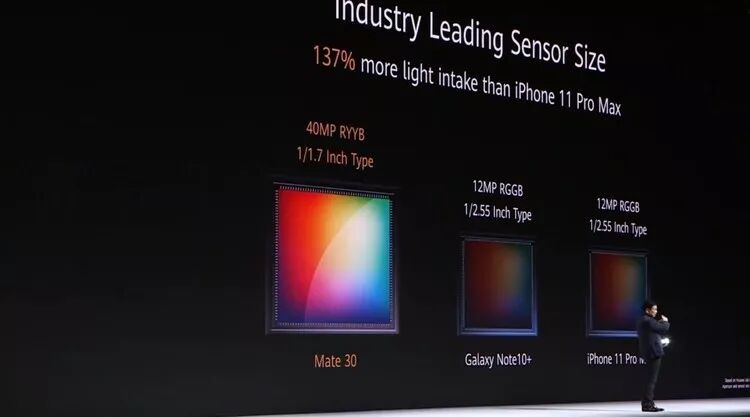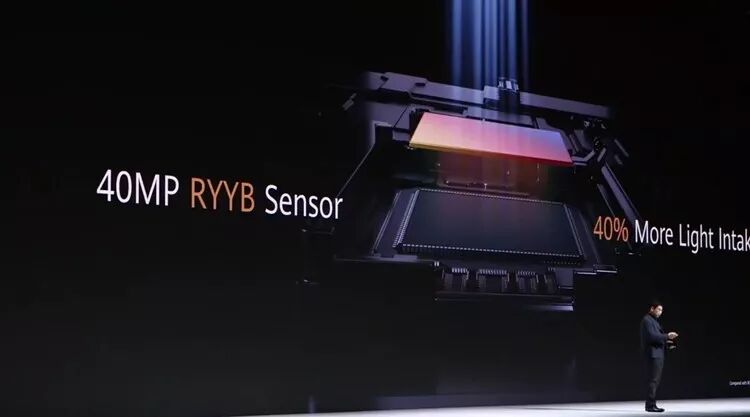 华为Mate30Pro配备的4000万像素超感光摄像头有1/1.7英寸大型传感器,地采用RYYB滤色阵列,将绿色像素替换为黄色像素,使后者能够同时透过红光、绿光,从而在像素层面增加40%的进光量,让暗光夜景清晰明锐。