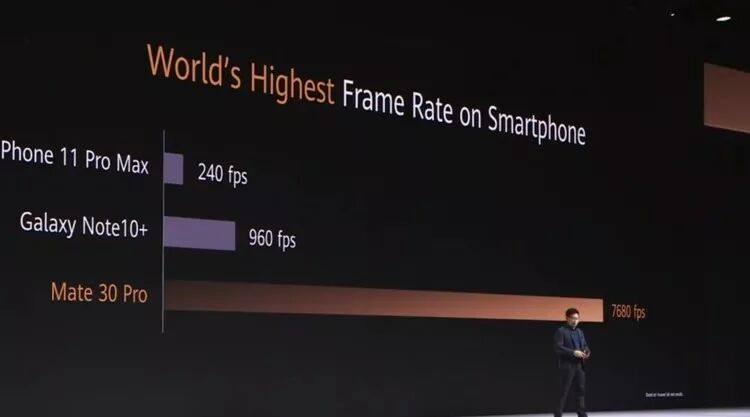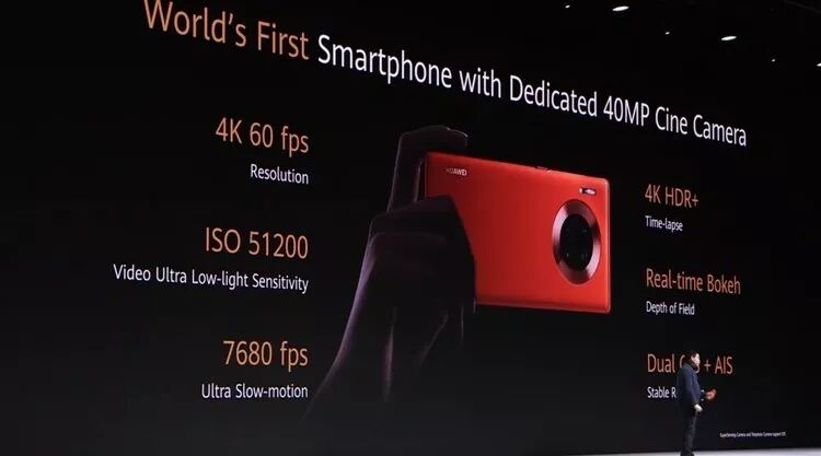 余承东将华为Mate30Pro的影像系统成为4摄“电影”级镜头,除了静态照片,也讲到了一些关于视频拍摄,电影摄像头能够拍摄4KHDR视频,保留超高动态范围;以及实现手机摄像的最高视频感光度ISO51200、最高帧率7680fps。