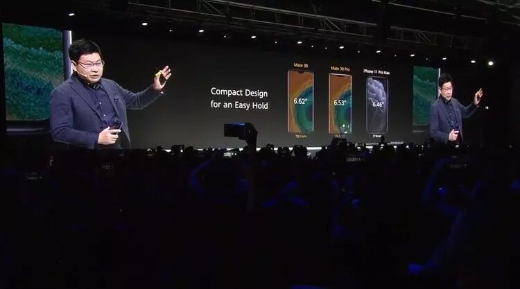 Mate30 Pro的屏幕为6.53英寸,Mate30则是6.62英寸,它们的尺寸都不小,但机身对比苹果刚刚发布的新旗舰iPhone11ProMax都更窄,容易握持,电池更大。
