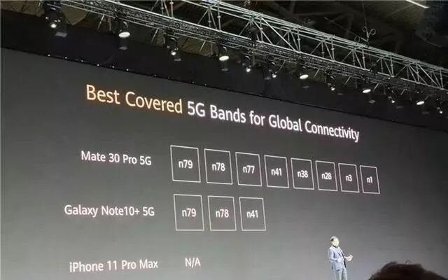 在讲这部分的时候,余承东不忘比较一下对手,刚刚发布的iPhone11ProMax仍旧不支持5G网络。