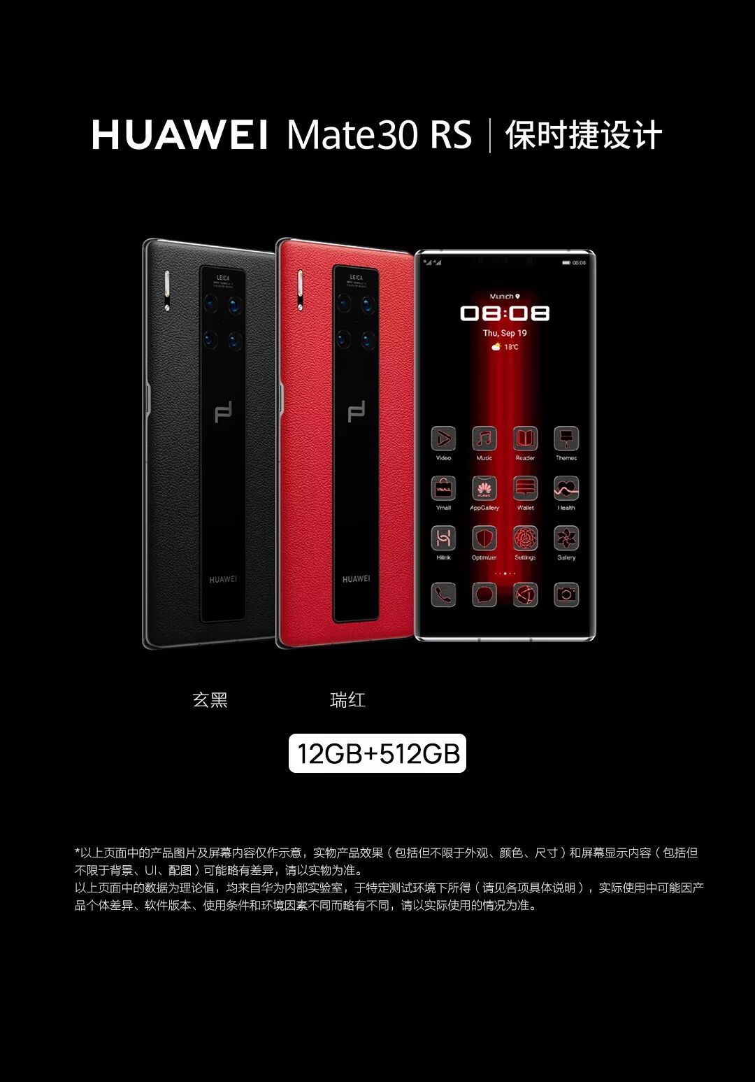 在 Mate 30 和 Mate30 Pro 亮相之后,华为发布会上还带出了很多人早已有所准备的保时捷设计款 Mate 30 RS。
