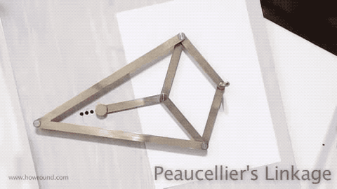 没有任何机械结构能够在不参考导轨,比如直尺的情况下画出真正的直线。可是历史就会在意料不到的地方急转弯。1864年,一个叫做波氏连杆机构(Peaucellier-Lipkin mechanism)的直线平面连杆绘图工具横空出世。