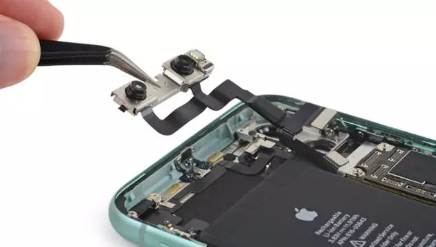 同时,TrueDepth模块的柔性电缆采用了新的布线方案,不再被固定在电池下面,这种设计有助于快速更换相机组件。