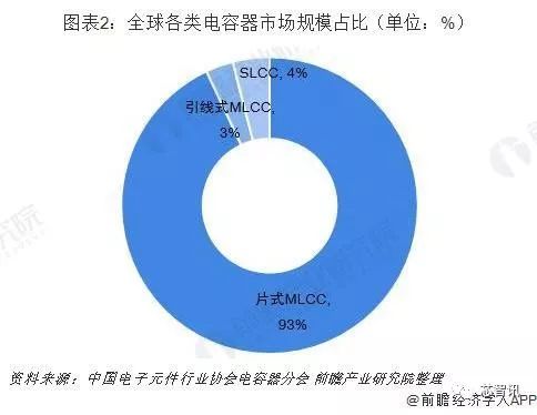 陶瓷电容是最主要的电容产品类型,大约占电容市场份额的56%。其优势在于体积小、高频特性好、寿命长、电压范围大。陶瓷电容器可以分为单层陶瓷电容器(SLCC)、多层陶瓷电容器(MLCC)和引线式多层陶瓷电容。多层陶瓷电容器具有耐高压、耐高温、体积小、电容量范围宽等特点,在成本和性能上都占据优势,下游应用较为广泛,其市场规模占整个陶瓷电容器的93%,成为主要的陶瓷电容。