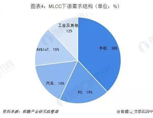 在应用上,MLCC的约70%需求来自消费电子领域,其中音视频设备的需求占比达到15%,手机设备的需求占比达到38%,PC的需求占比达到16%。车用MLCC也是一个重要的需求来源,占比达到16%。