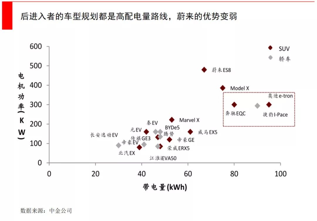 对照特斯拉,蔚来仍处于生命周期的前期——产品投放期。在这一阶段,生产和交付是投资者关注的重点。中金公司曾做了一项对“造车新势力”估值的研究,想分辨出现金流及增速、利润及增速、销量及增速哪组指标更重要。由于蔚来离盈利还很远,P/E等常用指标失效,除了DCF(现金流折现)外,还有哪些指标需要重点关注?通过复盘特斯拉市值的变化,中金公司比较了特斯拉市值和经营性现金流、自由现金流、归母净利润以及各自增速之间的关系,特斯拉股价在2013年经营现金流和自由现金流大幅改善的时候,有过较好表现,但其余时间关联度并不明显。特斯拉市值和销量及销量同比增速之间关联性较强。2013年特斯拉旗下车型首次突破2万辆,同比增长624%;2017年因为对Model 3放量的期待,股价再次迎来大幅上涨。所以对于“造车新势力”来说,汽车销量是影响市值的最重要因素。本质上,“互联网造车”不等于互联网,汽车是典型的重资产行业,互联网的很多规律和估值方法并不在汽车业适用。汽车业资金、技术密集,靠的是大投入带来大产出的规模效应,这和互联网行业边际成本低,通过平台模式无限扩张有本质区别。蔚来在2019年Q2因为汽车自燃召回事件,导致新交付汽车下滑,随后恢复。但据摩根大通预测,蔚来2019年全年订单交付可能不及预期,已将2019年出货量下调至4.1万辆,蔚来宣称2019年会交付4-5万辆。汽车的产能曲线很难像拼多多这种互联网公司GMV那样指数型上涨。所以蔚来需要时间来产能爬坡,这是砸钱也无法立刻砸出来的。如果蔚来在2019下半年ES6能够像特斯拉Model 3那样放量,那就会迎来一波上涨,但目前没有任何放量的迹象。ES6在今年初的预售也乏善可陈,相比于ES8在发布后不久就拿到了1.8万辆的预订,ES6在发售后的2个月内仅拿到7300个预订,虽然蔚来在之后的上海车展加大了营销力度和试驾投入,但因为汽车自燃召回事件又影响了生产速度,ES6销量至今没有达到投资者的高预期。另外,新能源补贴正在以每年30%的速度减少,可能在2021年完全消失,补贴约占ES8价格的16%,失去补贴将进一步削弱蔚来与特斯拉Model 3国产版的竞争力。