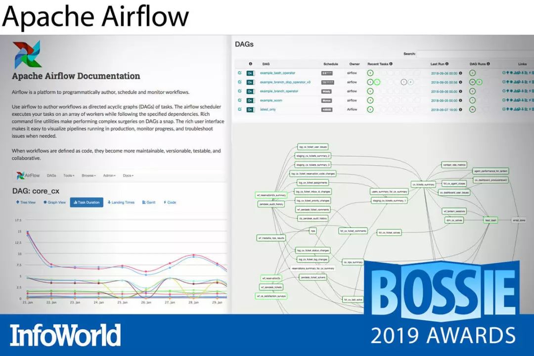 Apache Airflow 是一套基于 Python 的平台,负责以可编程方式实现工作流的编写、规划与监控。这些工作流属于任务的有向无环图(DAG),大家可以利用 Python 代码编写流水线以实现 DAG 配置。