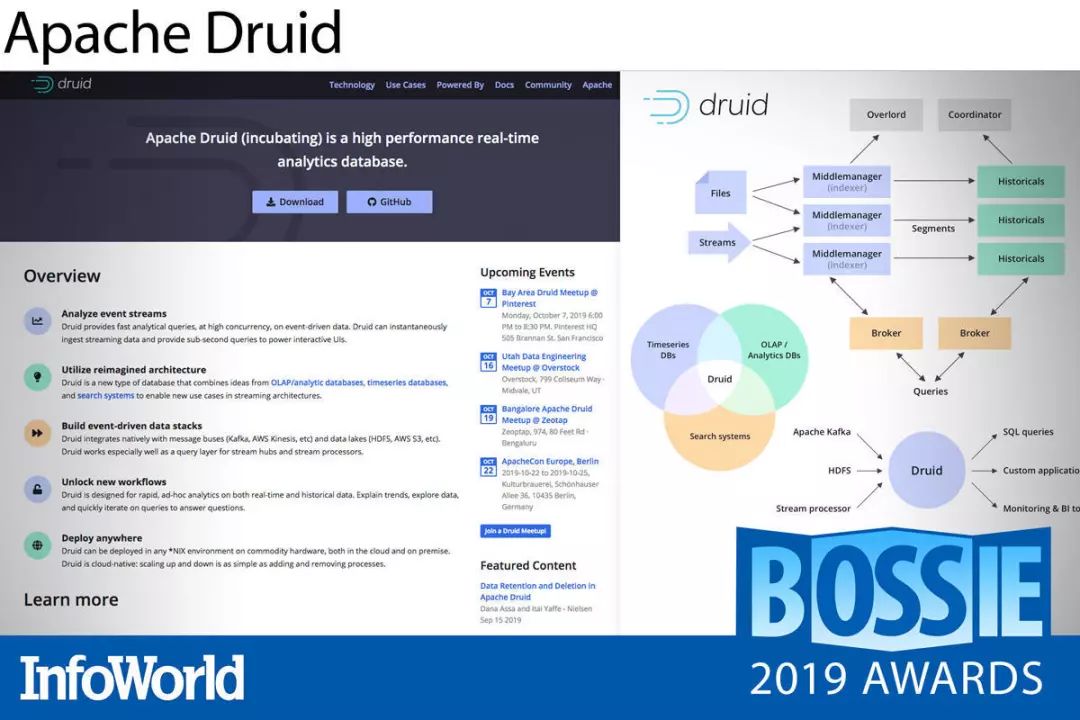 Druid 是个规模相可观的开源项目。集群当中包含多个服务器与进程,负责各自独立地处理摄取、查询或者工作负载协调任务。但是,这种复杂性并没有影响到出色的灵活性与可靠性。尽管目前 Druid 尚处于 Apache 孵化阶段,但其已经拥有良好的稳定性、容错能力并能够在本地或者云环境中支持生产流程。