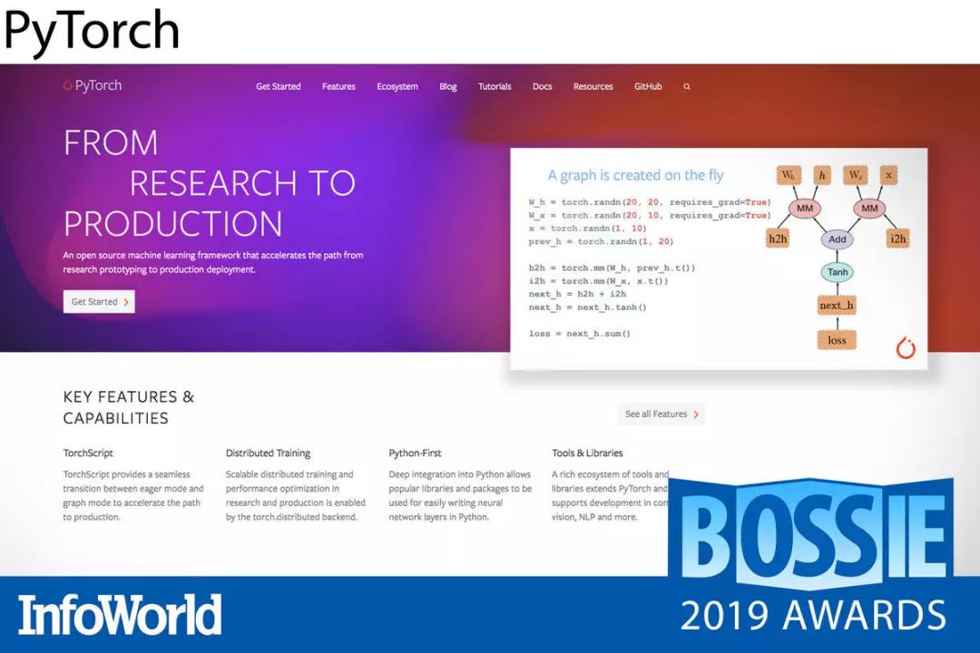 在 2018 年入驻深度学习领域并立即成为研究人员的热门选项之后,PyTorch 在 2019 年进一步针对生产需求做出了改进。随着 PyTorch 1.0 版本的到来以及 TorchScript 的出现(TorchScript 为 JIT 编译的 Python 子集,同时配合一套高速 C++ 运行时),该框架无疑已经为生产应用做好准备。既然 Facebook 公司能够利用 PyTorch 搞定每天一万亿次操作,那么它也绝对能够满足我们的所有日常需求。