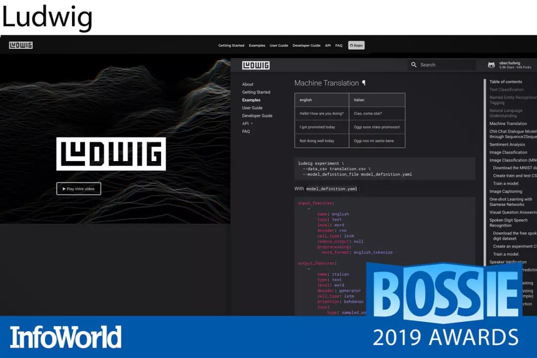 Ludwig 是一套由 Uber 公司开发的 Python 工具箱,基于 TensorFlow,旨在降低神经网络编程的复杂性水平。Ludwig 能够帮助数据科学新手在无需编写任何代码的前提下,完成对复杂深度学习模型的训练与测试。没错,只需要对 YAML 配置声明文件进行参数调整,即可轻松完成目标。当然,经验更为丰富的数据工程师也可以在后台调整更多其他参数。