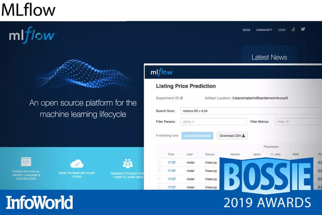 MLflow 为机器学习项目中的各个主要组成部分及阶段都准备了对应的工具。在机器学习实验方面,MLflow 提供 API 以实现结果的跟踪与比较。为了重现用于生成结果的环境,MLflow 提供基于 Conda 与 Docker 的代码打包格式。为了将模型交付至不同的部署平台,MLflow 还提供专门的模型打包格式,允许立足模型提供预测结果,同时保留其中关于模型创建的数据与代码关系。