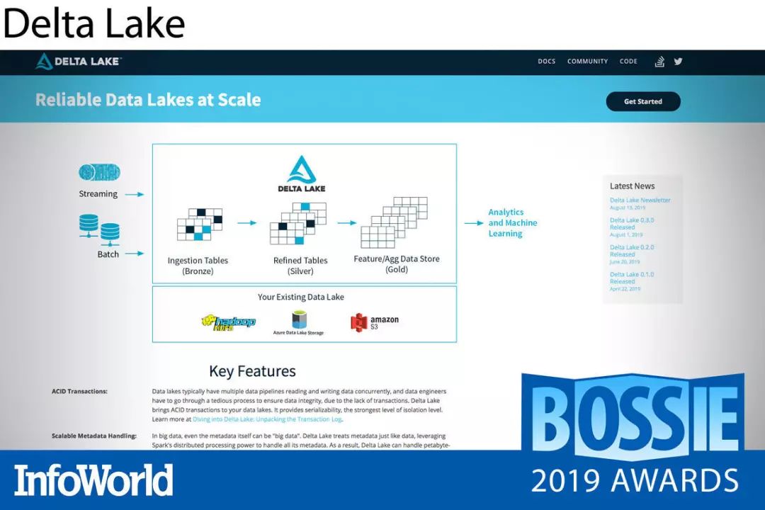 Databricks 公司于今年早些时候对 Delta Lake 进行了开源。这样的选择令人惊讶,毕竟这家公司过去一直将其作为商用产品中不可或缺的重要组成部分。Delta Lake 拥有处理 PB 甚至 EB 级数据的强大性能,负责充当数据湖中的存储层,可提供 ACID 转换与简单的数据版本控制功能,,且只需通过 Apache Spark read 函数调用传递时间戳即可实现“时间旅行(time travel)”。