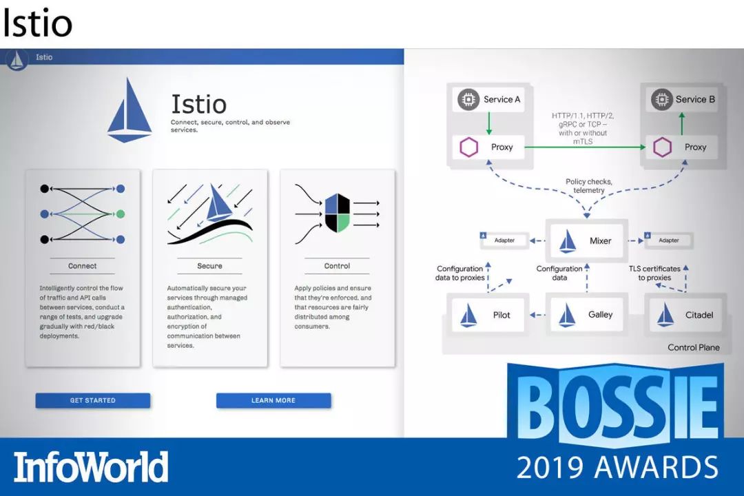 Istio 立足一整套 Kubernetes 集群(常被称为「服务网格」)对各容器与编排服务加以管理。其利用 Envoy 代理“边车”充当服务网格当中各服务间所有通信的代理机制。用户可以通过高级抽象对集群中的网络进行随意变更,而后逐步推出,并在发现问题之后立即回滚。Istio 还能够生成与流量活动相关的统计信息,帮助大家快速获得符合需要的服务性能。