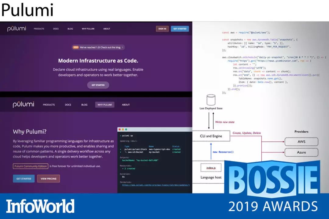 一般来讲,IT 基础设施要么需要以手动方式拼凑起来(非常费力),要么是通过需要调用数十个 API 的脚本组装在一起(极为复杂),或者是通过 Terraform 等工具执行配置文件(高度专用化)。Pulumi 提供了一种与众不同、通用度高且基本思路非常简单的方案,能够帮助我们轻松解决各类集成过程中的常见问题。大家不必勉力使用令人困惑的新工具或笨拙旧工具的组合,而可以选择你最熟悉且喜爱的常规编程语言以编程方式进行基础设施声明。是的,完全无需 YAML!