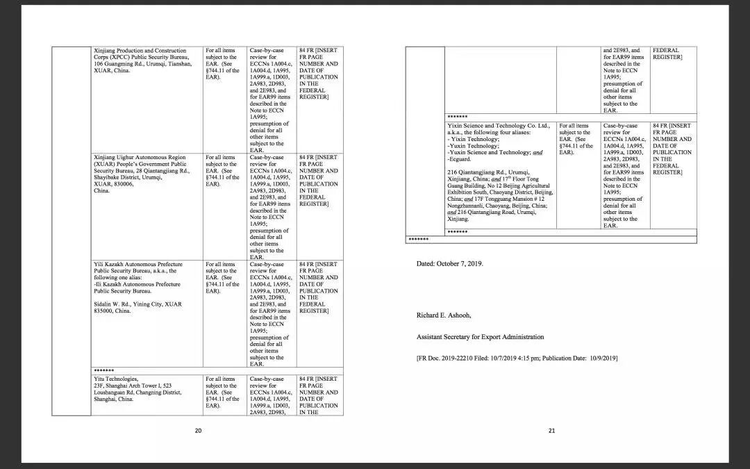 10月7日美国商务部扩大制裁陆企,公告将 28 家陆企列入美国出口管制「实体清单」(即贸易黑名单),其中还包括素有「中国天网」的监视巨头海康威视 (Hikvision)。