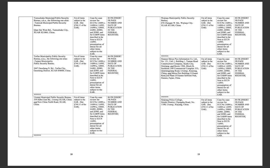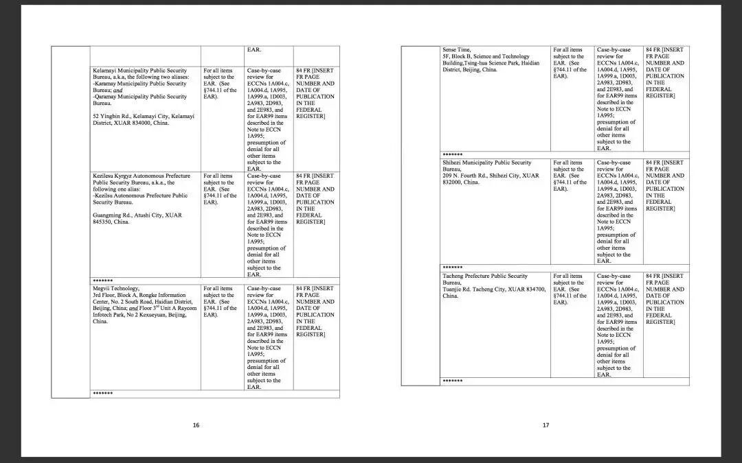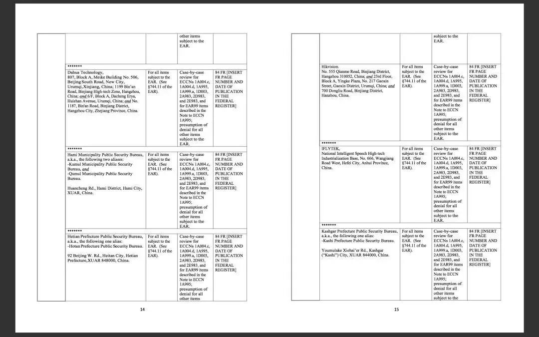除了海康威视外,其他贸易黑名单还包括浙江大华科技、「中国 Siri」科大讯飞、厦门市美亚柏科与怡心国际科技等多家中国企业。