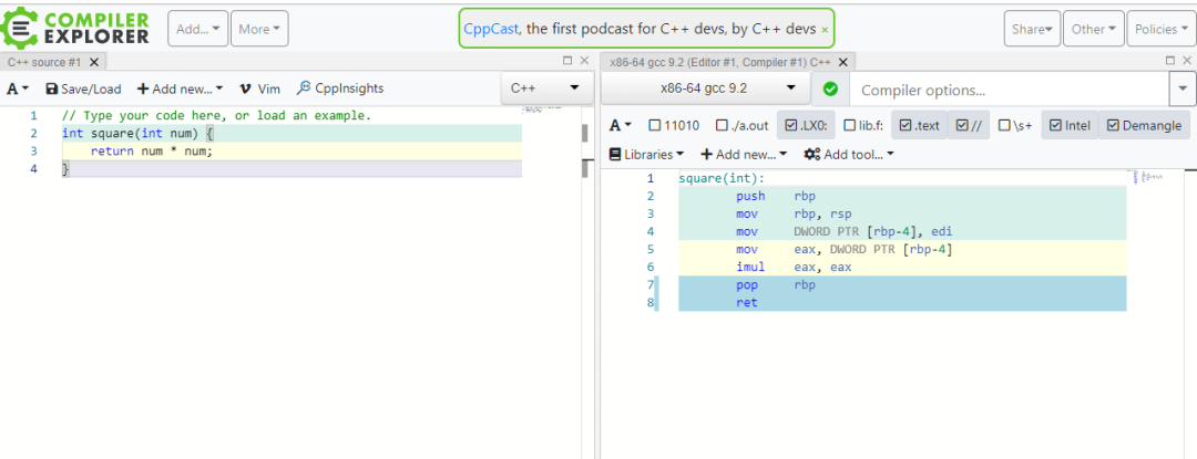 网站地址:https://gcc.godbolt.org/