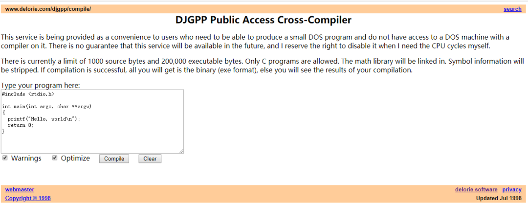 网站地址:http://www.delorie.com/djgpp/compile/