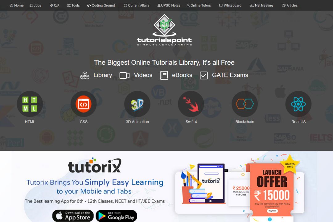 网站地址:https://www.tutorialspoint.com/index.htm