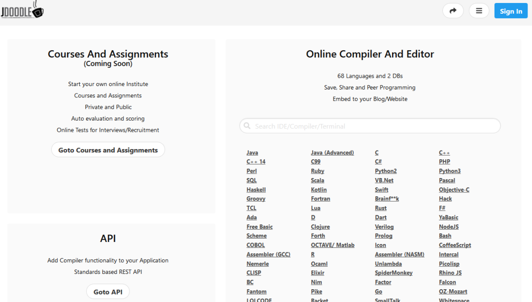 这款在线的编辑器不仅支持68种语言,另外还支持协作代码。网站地址:https://www.jdoodle.com/11、OnlineGDB | 在线C,C ++,Java,PHP编译器