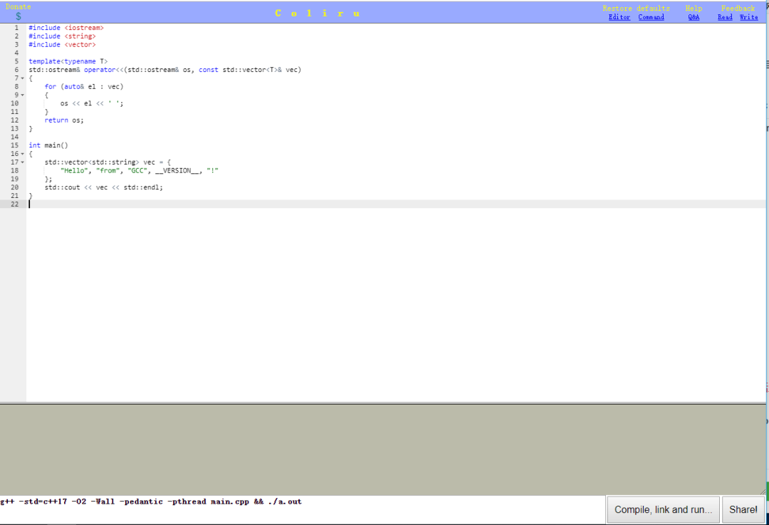 网站地址:http://coliru.stacked-crooked.com/