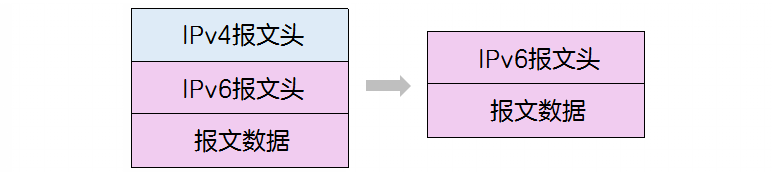 2)当封装包到达隧道接收端时,解掉封装包的IPv4包头,取出IPv6报文继续处理。