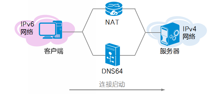 - DNS64 则主要是配合NAT64工作,将DNS查询信息中的IPv4地址合成到IPv6地址中,返回合成的IPv6地址给IPv6侧用户。