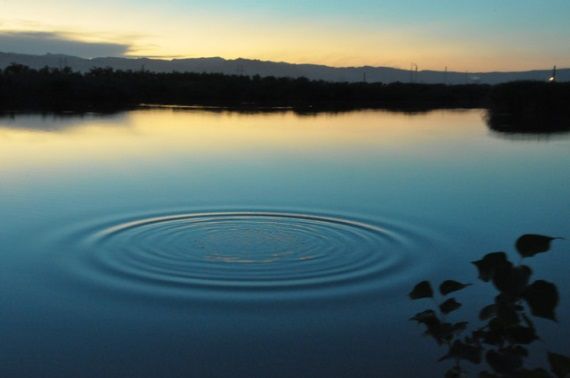 扔一颗小石子到平静的湖面,就可以看到美丽的涟漪: