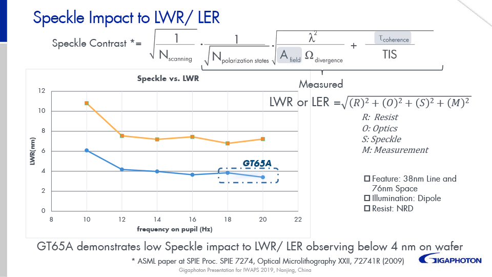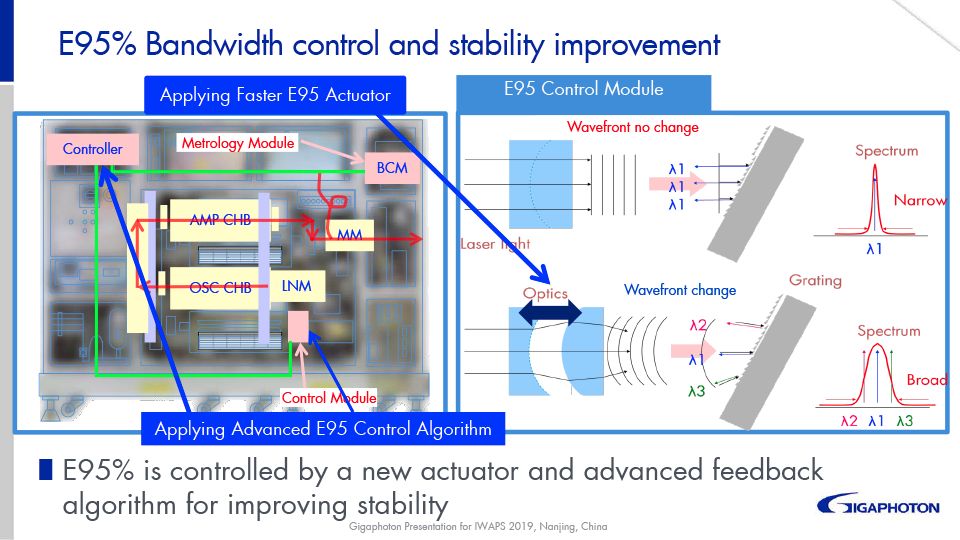 编者按:来自Gigaphoton的Tommy Oga介绍了下一代ArF光源 “GT65A”,ArF浸没式光刻是一项具有前景的光刻技术,能够满足严格的工艺控制要求,同时提供高效的产率。下一代光源的研发目标是能进一步提高芯片的产量、满足可制造性。E95%带宽是光源的关键参数。较低的E95%带宽能够提高成像对比度,从而在晶圆上实现更高的CD均匀性。