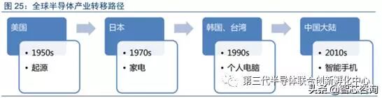 中国大陆芯片下游需求端终端市场全备,供给端有望向中国大陆倾斜。(1)需求端:下游终端应用市场全备,规模条件逐步成熟。随着全球终端产品产能向中国转移,中国已经成为全球终端产品制造基地,2017 年中国汽车、智能手机出货量占全球比重分别达 29.8%、 33.6%。芯片需求全面涵盖硅基、化合物半导体市场,芯片市场空间巨大。(2)供给端:当前中国大陆产值规模居前的 IC 设计、晶圆代工、存储厂商寥寥数计,技术水平尚未达到领先水平,中高端芯片制造、化合物半导体芯片严重依赖进口。随着近些年终端需求随智能手机等产业链而逐渐转移至中国大陆,需求转移或拉动制造转移,下游芯片供给端随之开始转移至大陆。